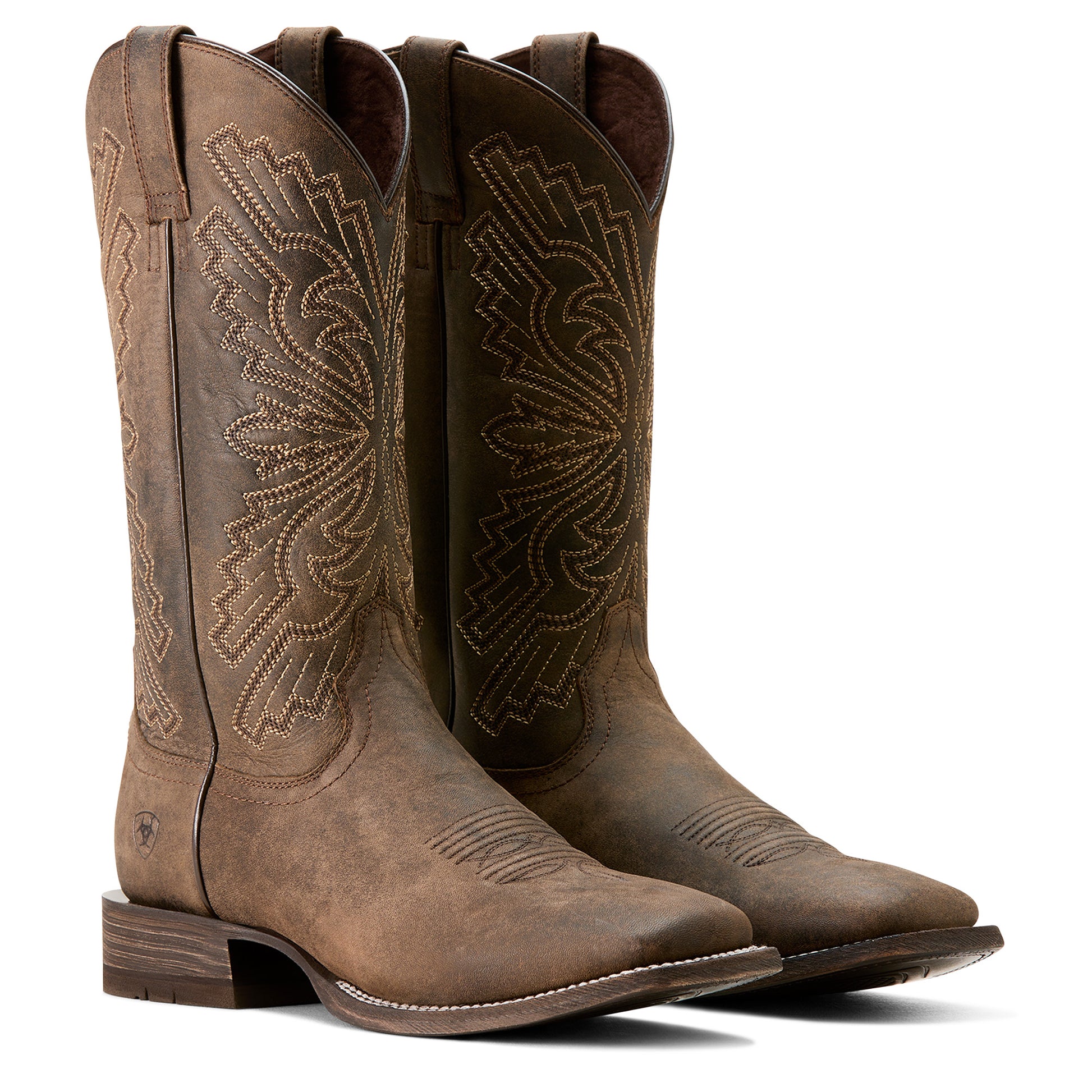 Flashy boot packs performance with 13-inch shaft and bold stitching. TekStep sole adds heel-to-toe cushioning. Style 10053634: Horseman heel (1.5"), wide square toe.