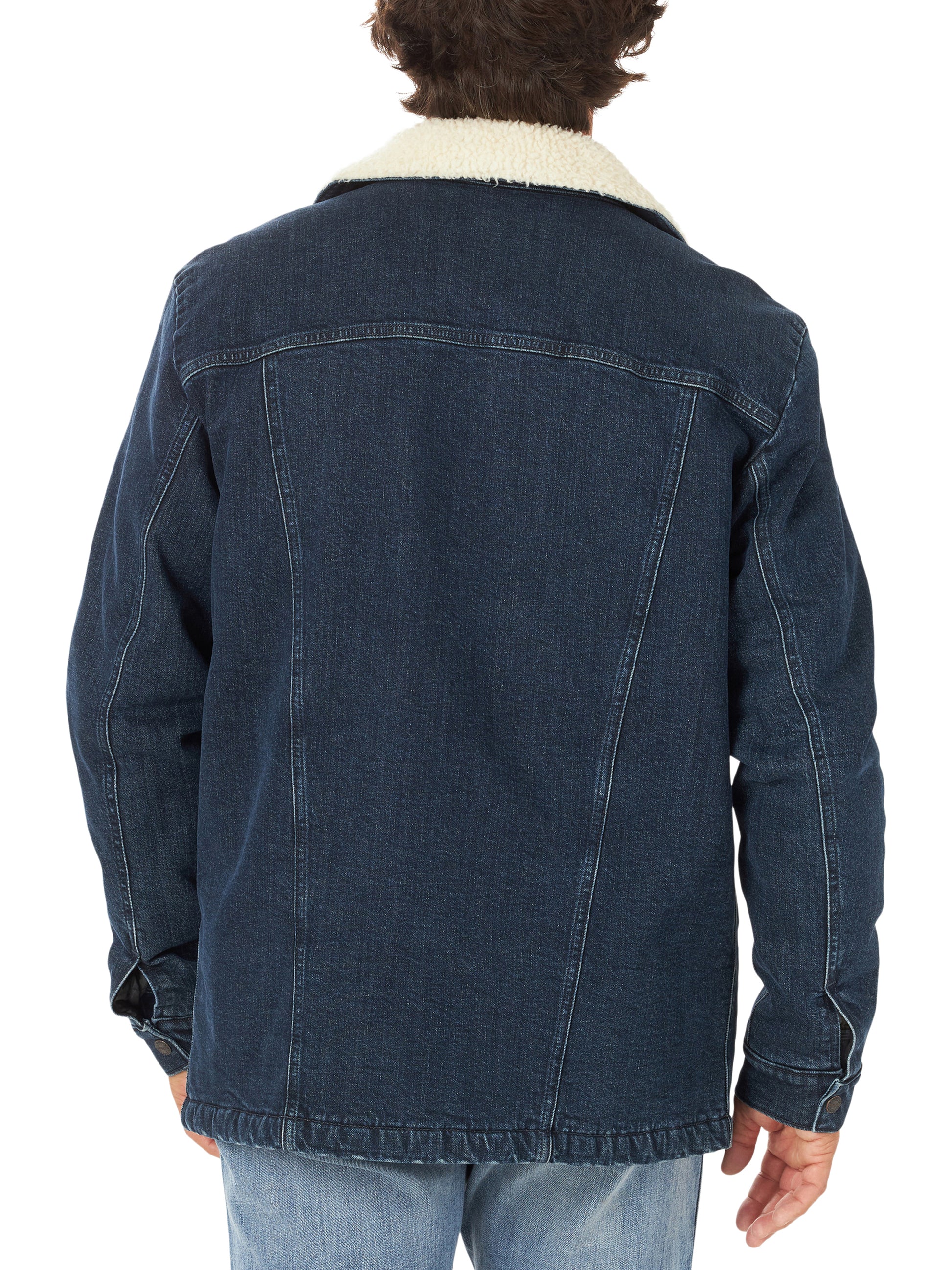 Classic Wrangler men's jacket with Western W-stitched pockets, angled welt pockets, and cozy sherpa collar and lining for easy all-season warmth now.