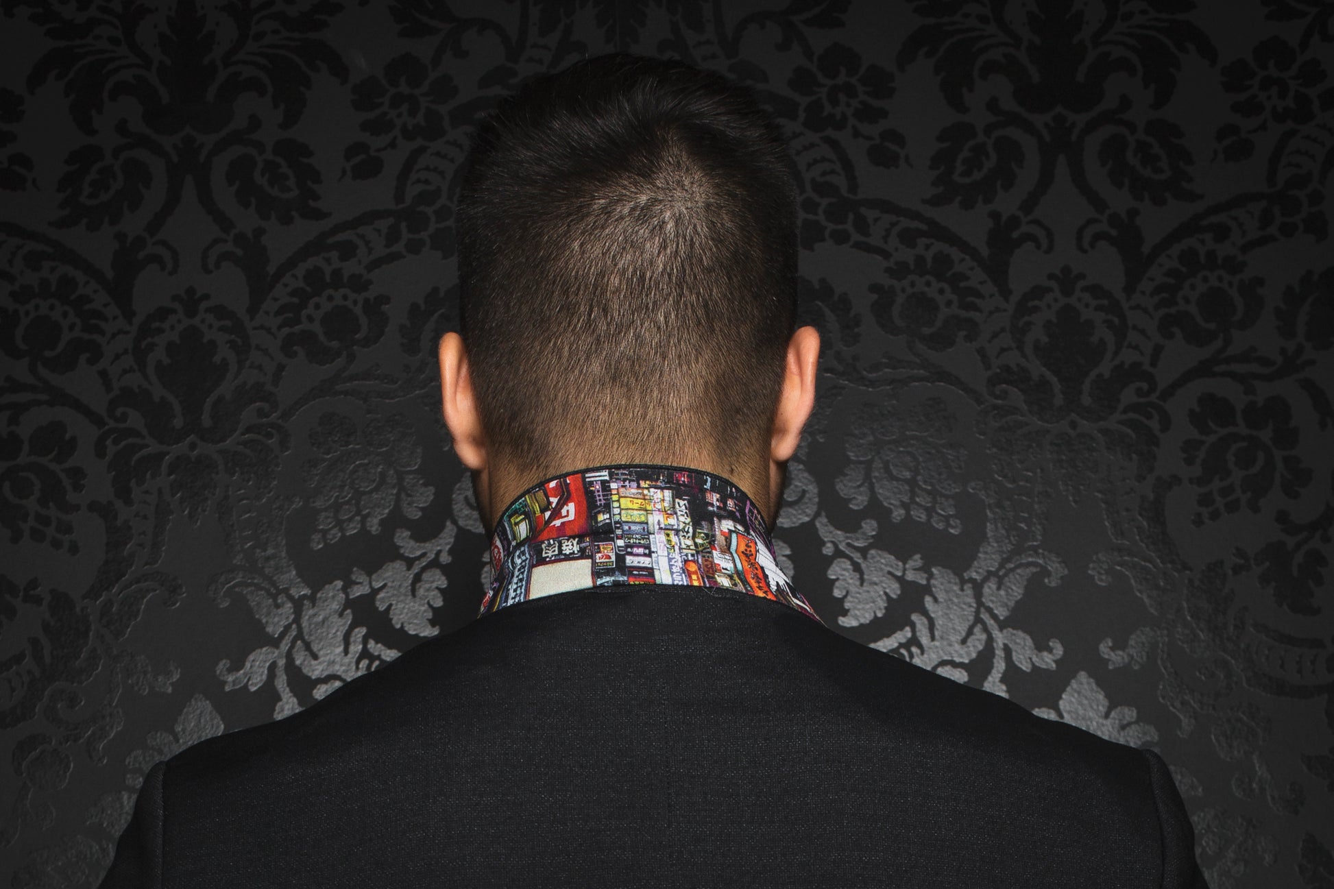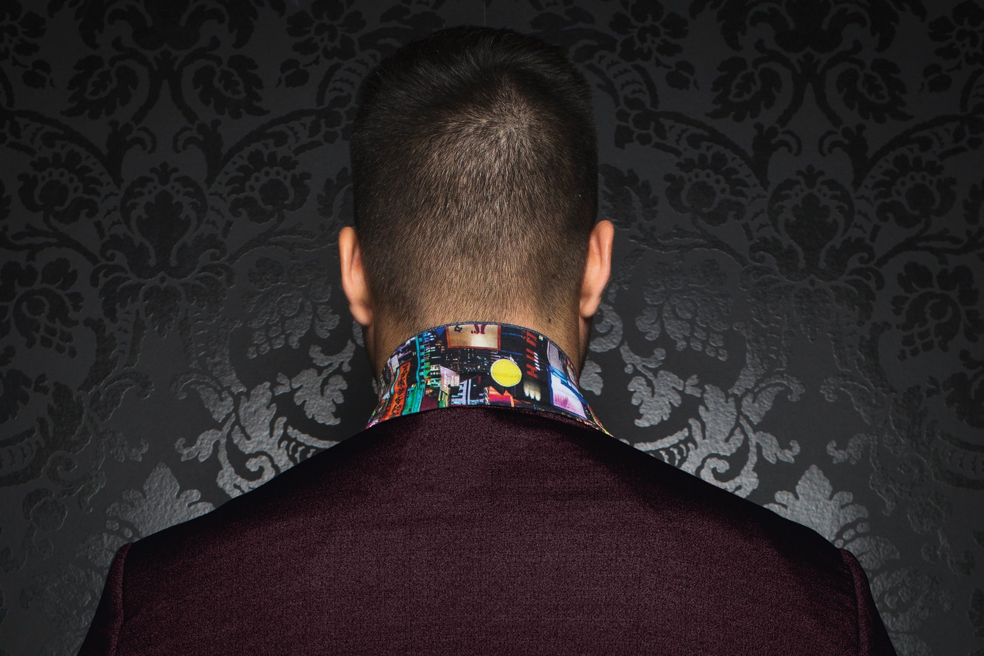 Stretchy men's blazer that's fashionable and comfy. Features Au Noir embroidery, special buttonhole, and patterned lining. Canada-designed with premium fabric for easy movement and 4-way stretch. Pair with jeans or shirts; dry clean. Includes handkerchief.
