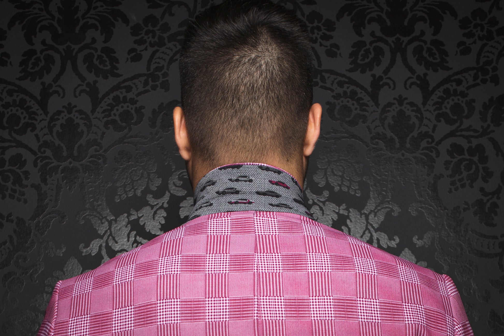 Stretchy men's blazer that's fashionable and comfy. Features Au Noir embroidery, special buttonhole, and patterned lining. Canada-designed with premium fabric for easy movement and 4-way stretch. Pair with jeans or shirts; dry clean. Includes handkerchief.
