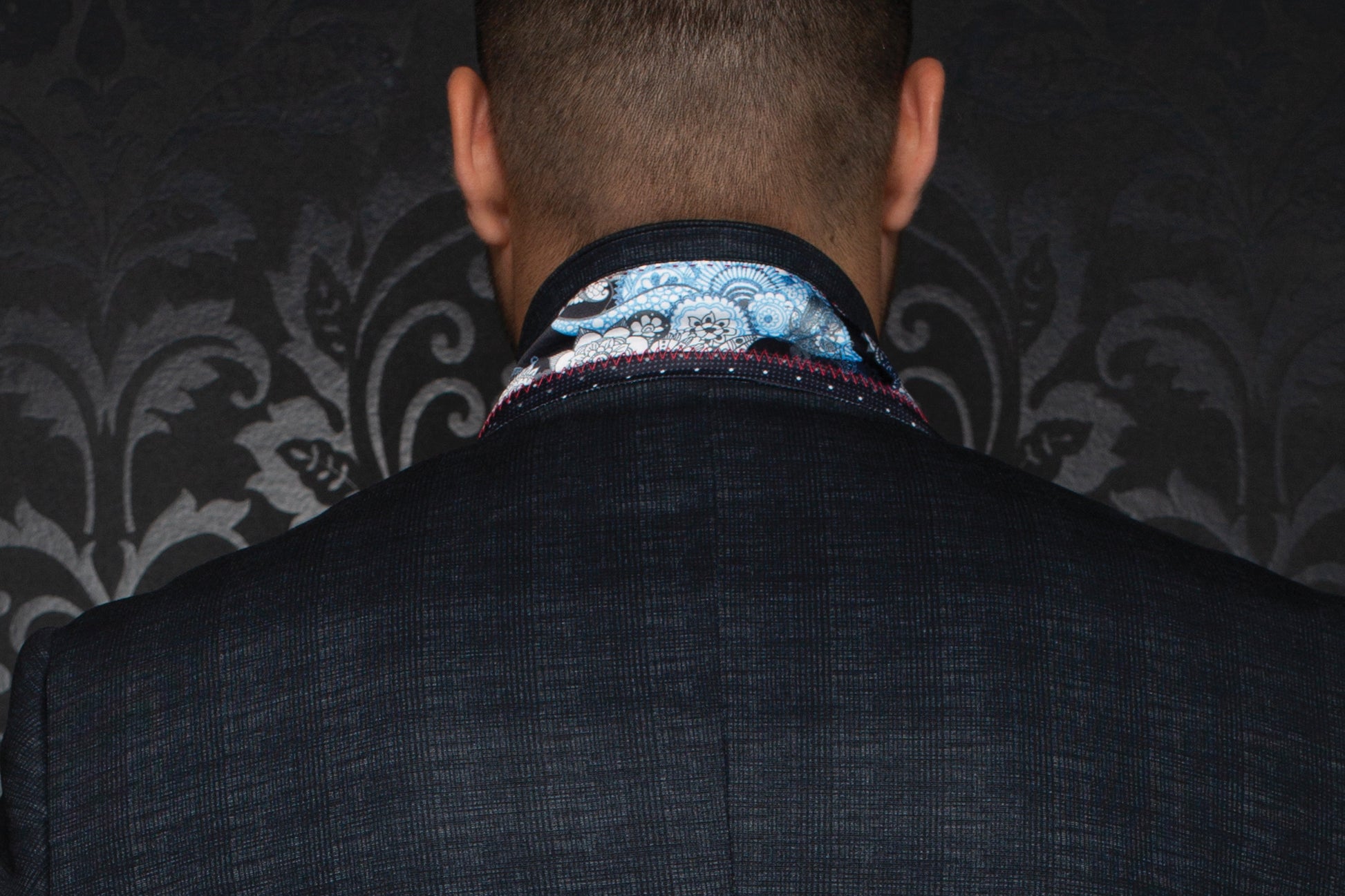 Stretchy men's blazer that's fashionable and comfy. Features Au Noir embroidery, special buttonhole, and patterned lining. Canada-designed with premium fabric for easy movement and 4-way stretch. Pair with jeans or shirts; dry clean. Includes handkerchief.