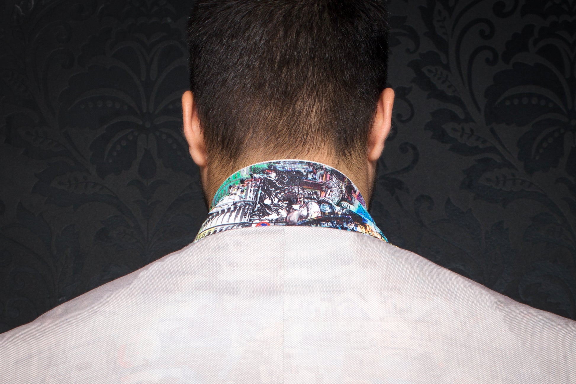 Stretchy men's blazer that's fashionable and comfy. Features Au Noir embroidery, special buttonhole, and patterned lining. Canada-designed with premium fabric for easy movement and 4-way stretch. Pair with jeans or shirts; dry clean. Includes handkerchief.