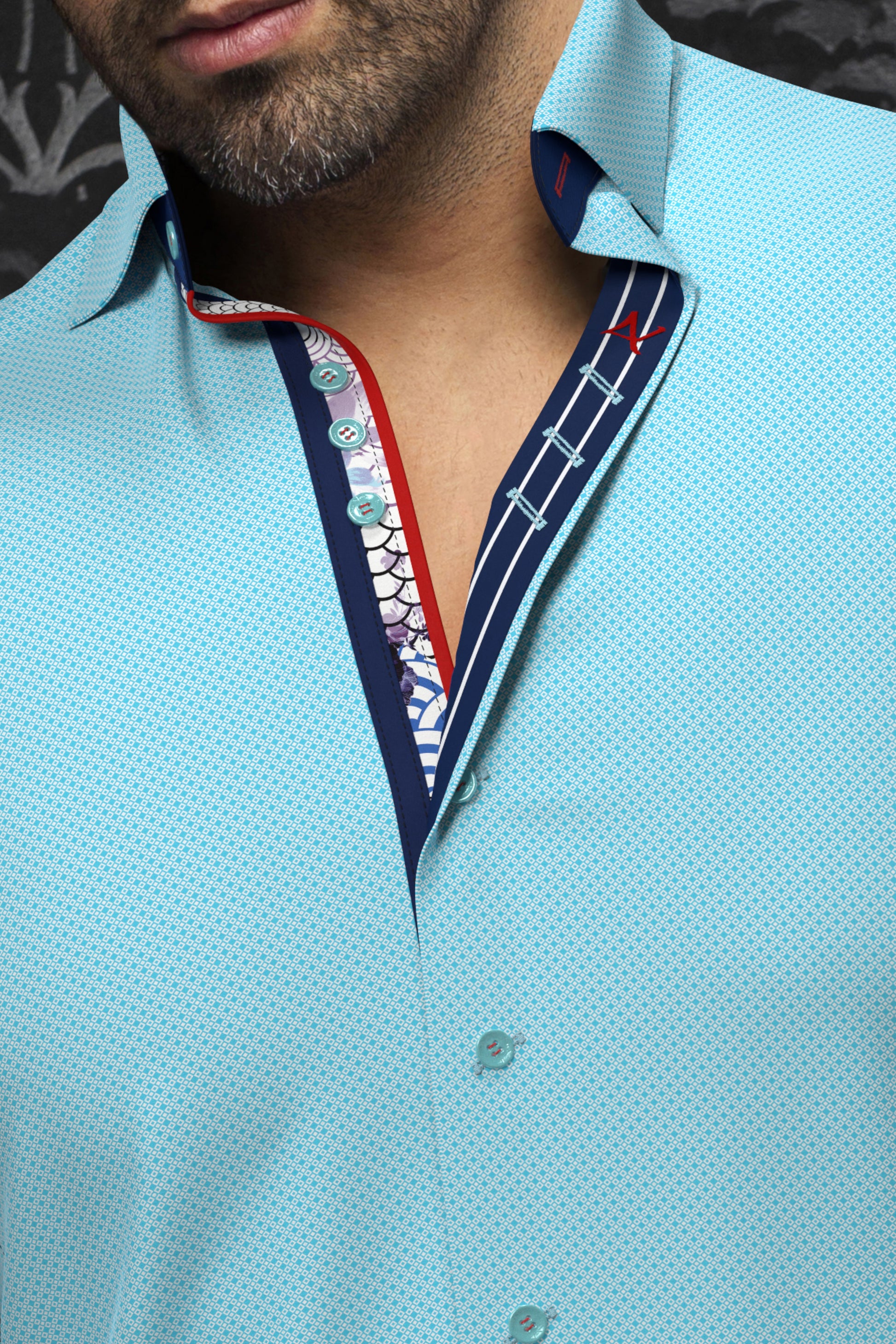 This is a collection of comfortable, performance stretch, fashionable dressy and casual shirts. Stand out from the crowd, thanks to Au Noirs cleaver use of contrasting patterns and sophisticated details. Comfortable with a high quality, performance stretch cotton fabric.