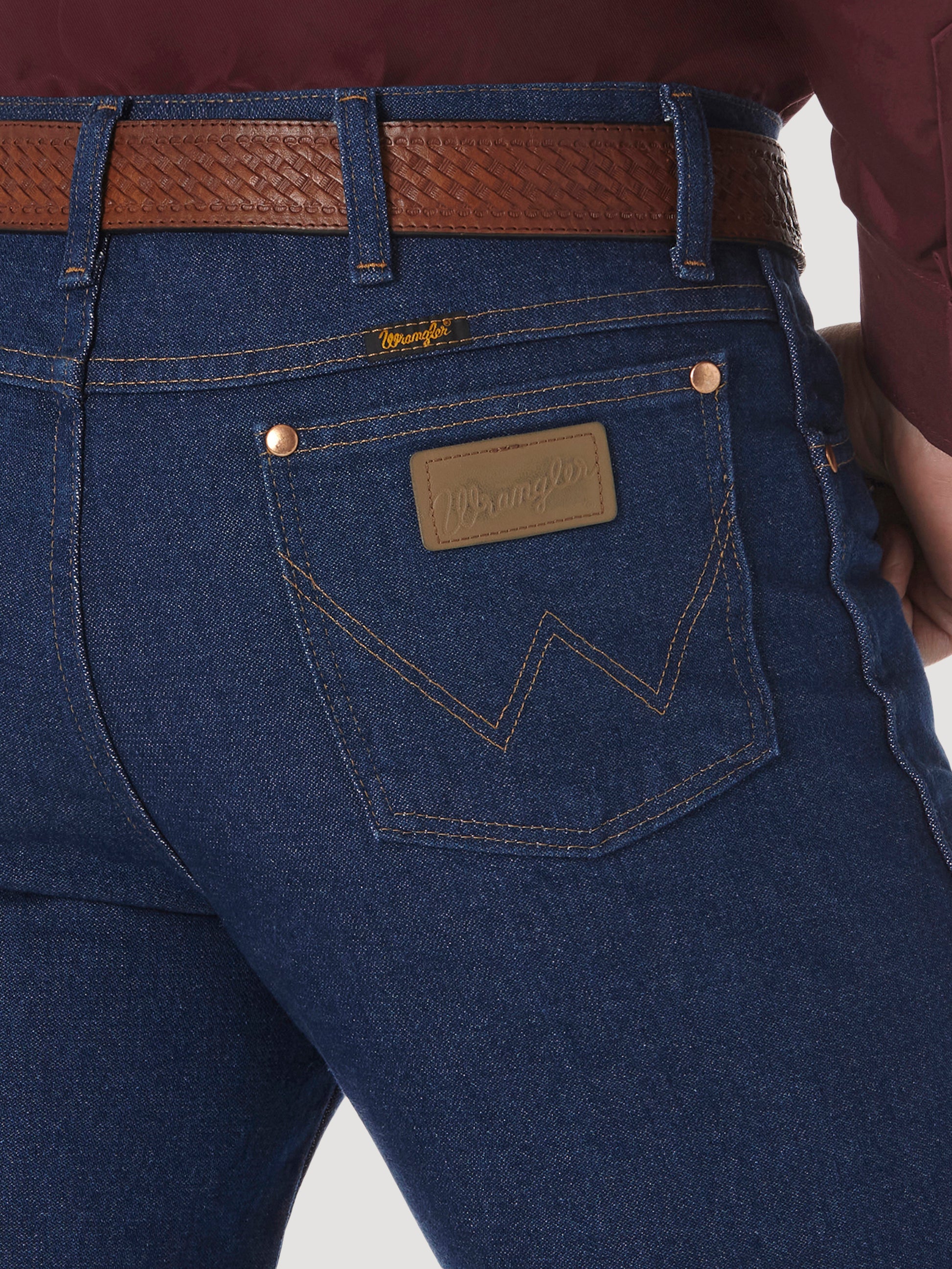 Wrangler Cowboy Cut 0936 jeans give a glove-like slim fit, classic W stitching, and all-day comfort that works for rodeos, work, or weekends too. Color Prewashed Indigo.
