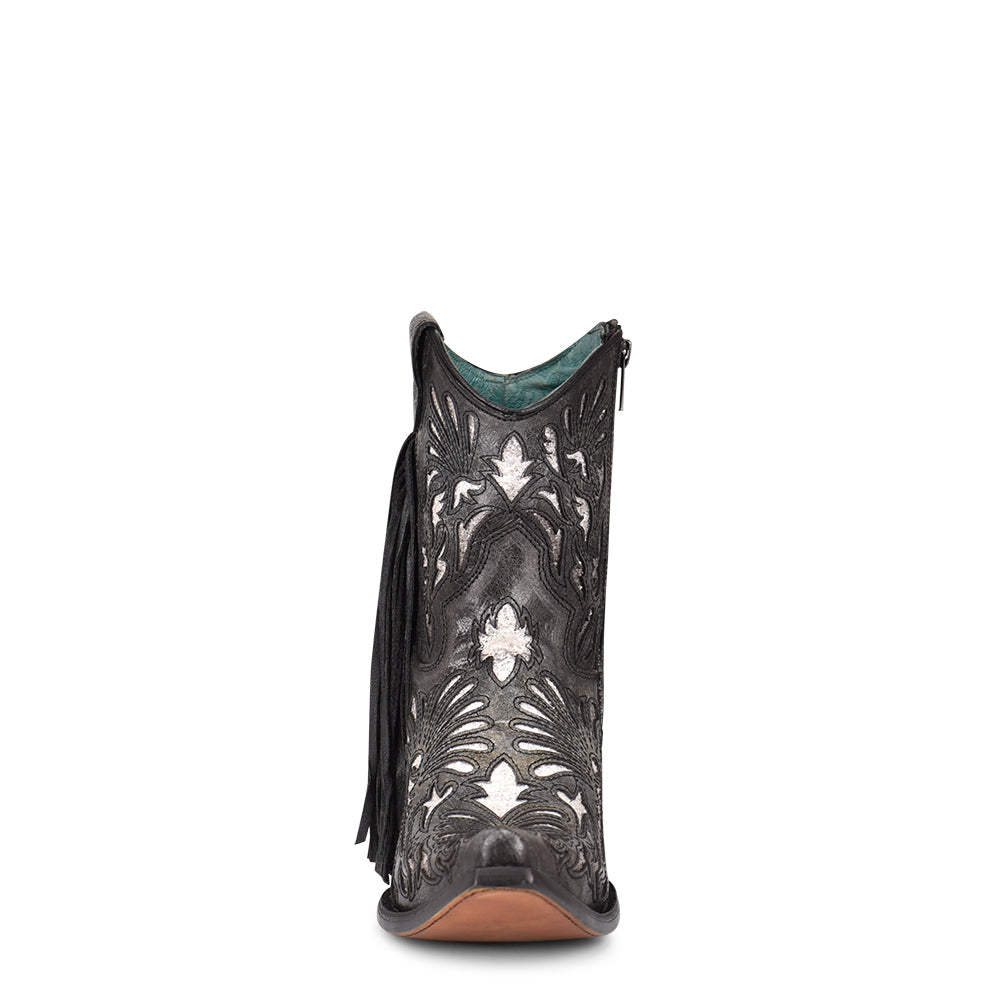Black Silver Inlay & Embroidery & Fringe Ankle Boots