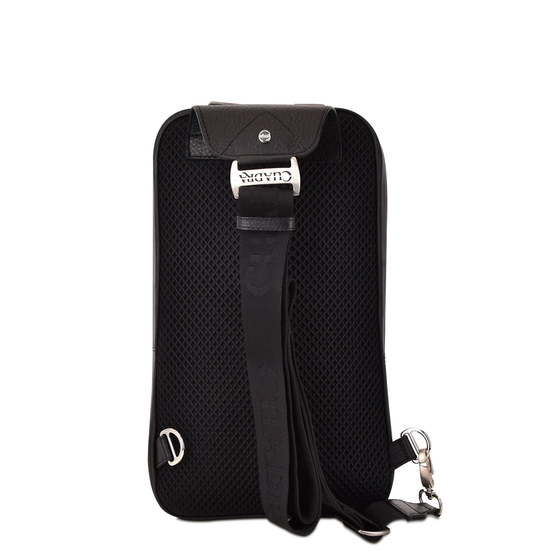 Black Stingray Bag. Stylish men's leather shoulder bag with monogram engraving, dual secure compartments, card slots, and adjustable handle. Perfect for daily adventures.