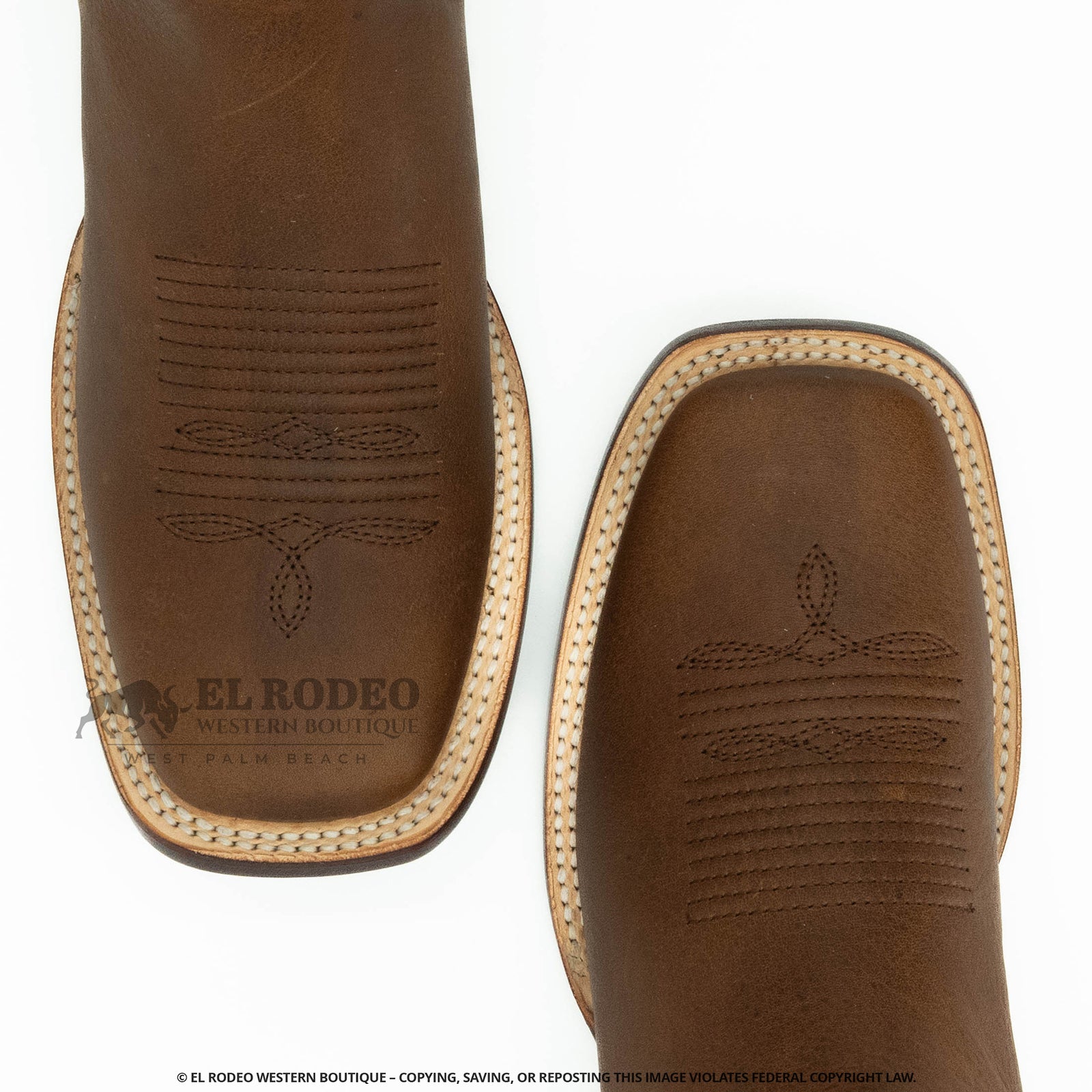 Los Altos cowhide ankle boot with wide square toe, medallion detail, and soft glove lining for all day rodeo comfort and rugged western style daily