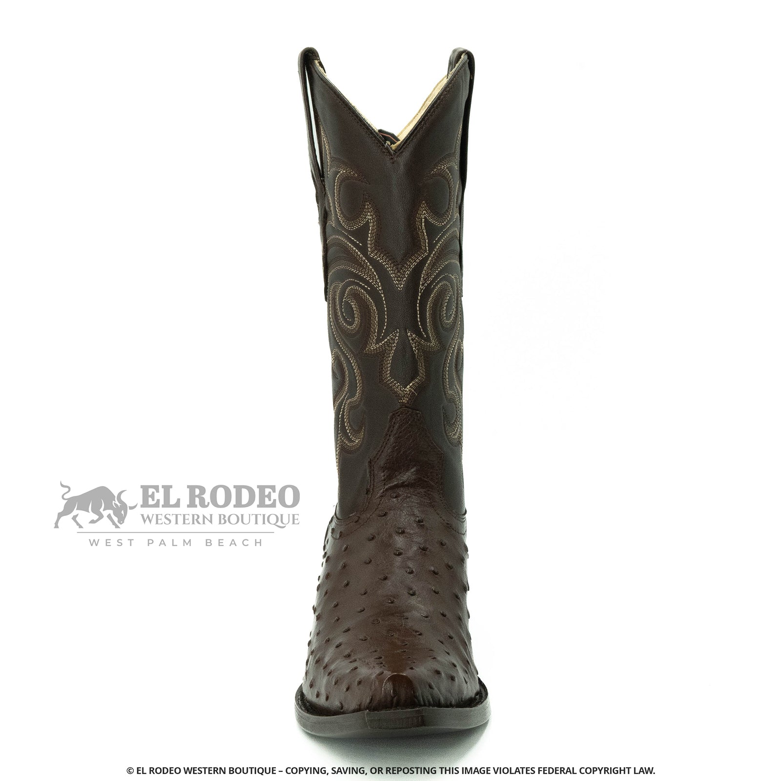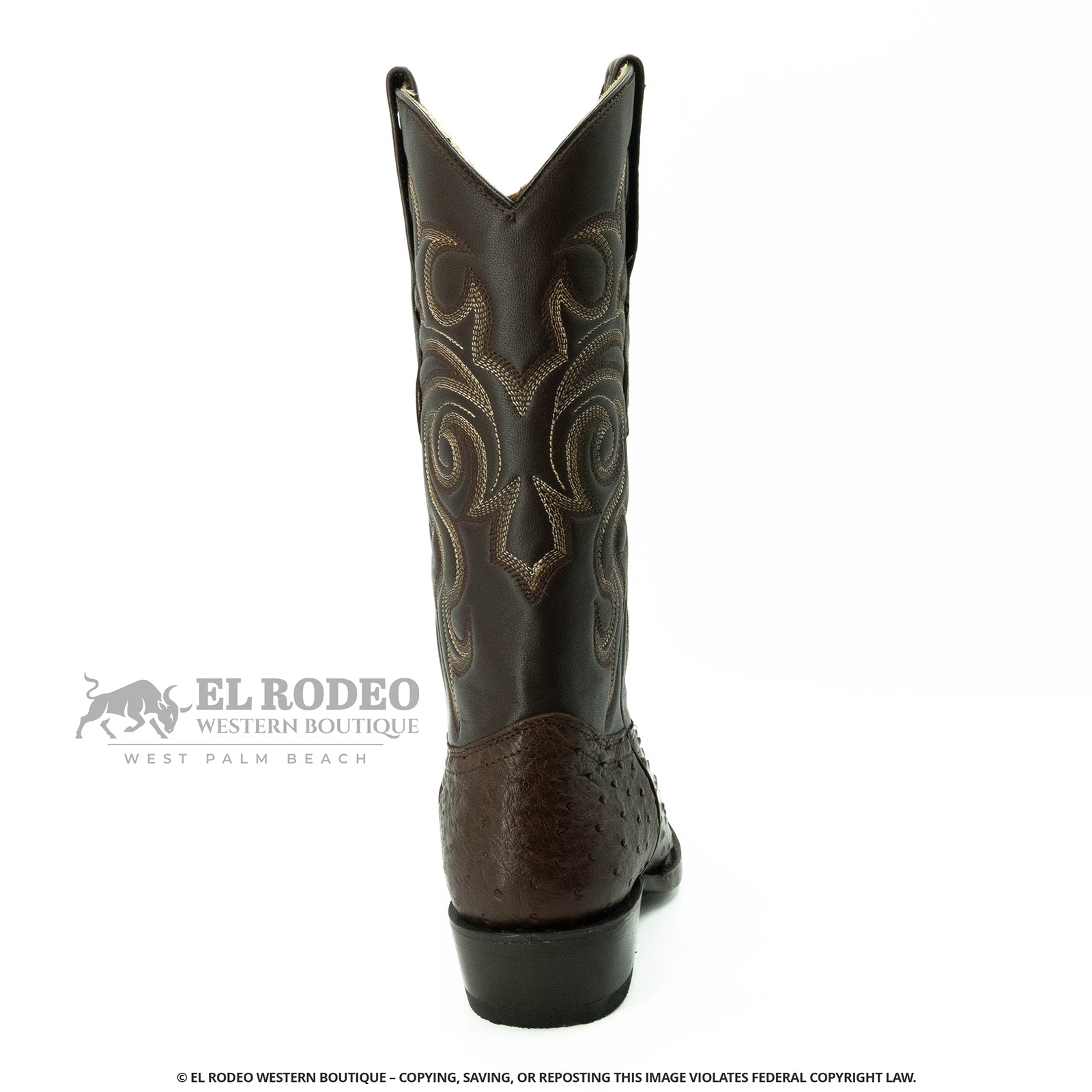 Los Altos full quill ostrich brown leather, snip toe boots mix rich quill texture, leather sole, and easy Western comfort for all day wear from work to weekend rides out.