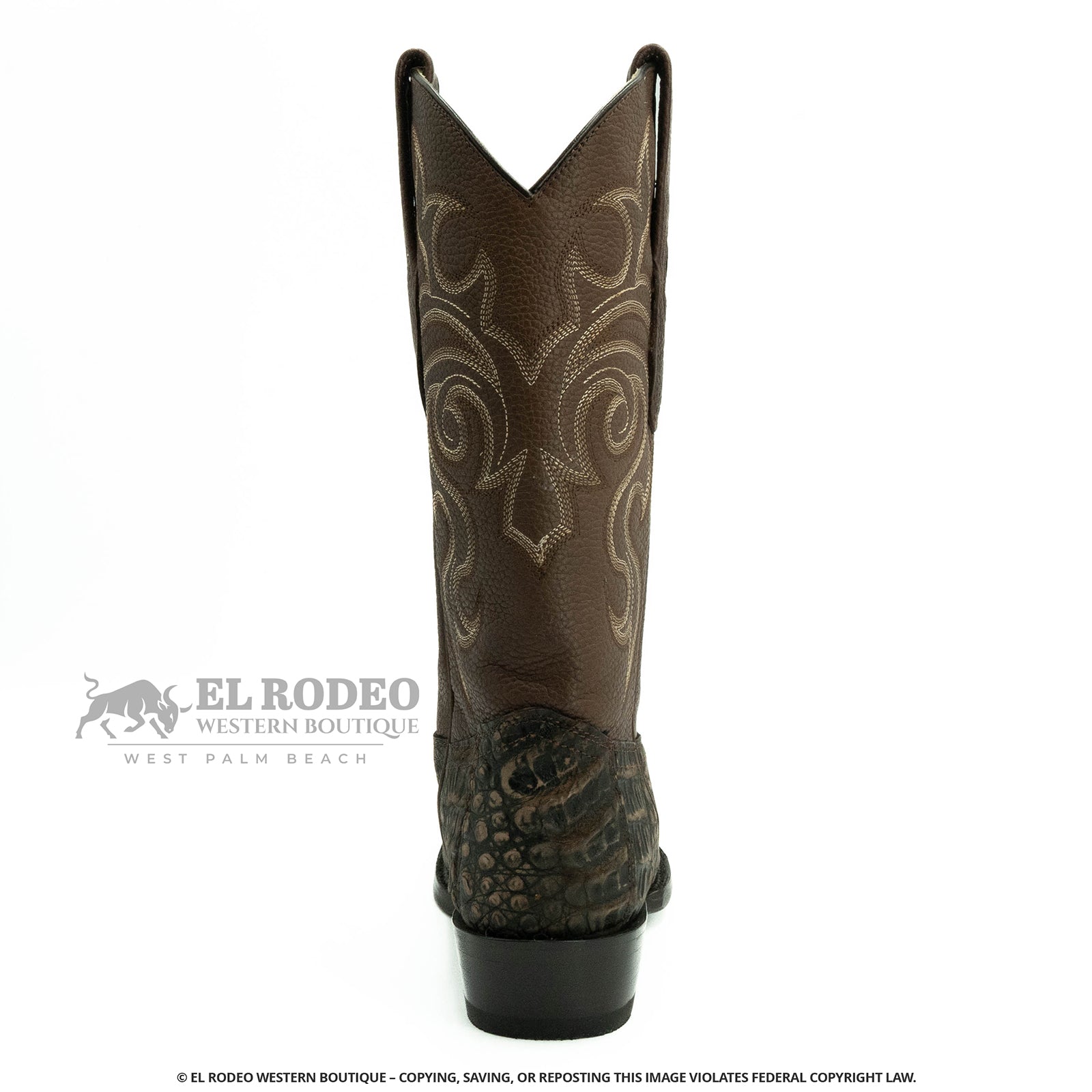 Los Altos exotic caiman belly boots in rich brown, snip toe, leather sole, sharp Western style with all day comfort and handcrafted quality feel.