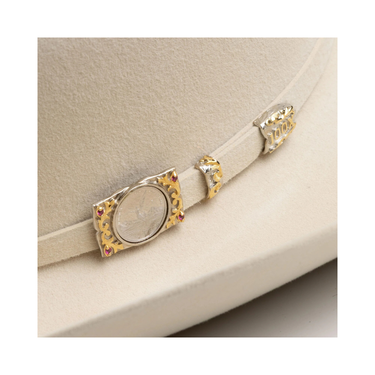 The 100X Independencia hat (MF1C65INDE40) It's 100% fur felt with sizes 6 3/4 to 7 3/4 inches, a 4-inch brim, leather sweatband.