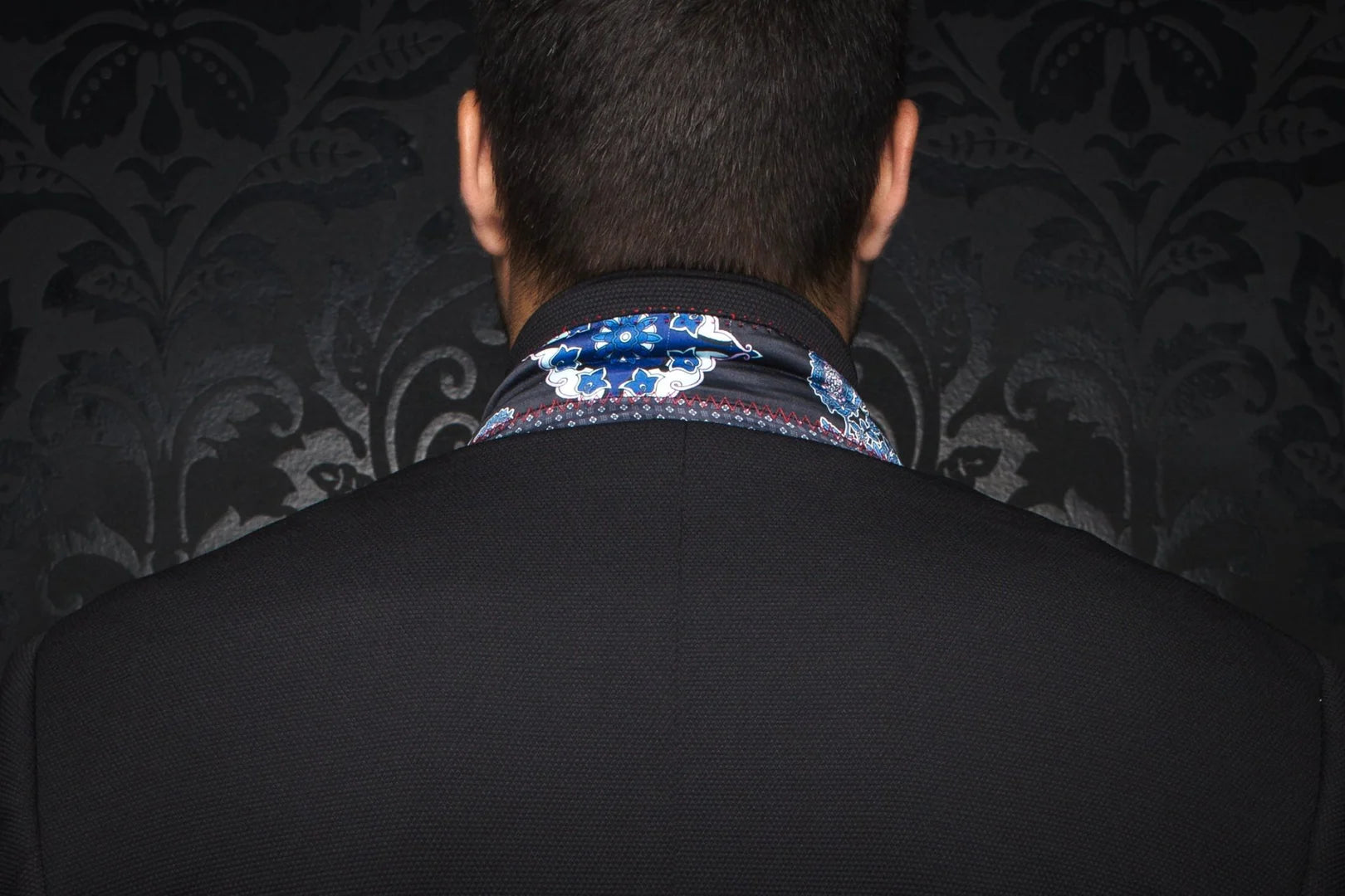 Stretchy men's blazer that's fashionable and comfy. Features Au Noir embroidery, special buttonhole, and patterned lining. Canada-designed with premium fabric for easy movement and 4-way stretch. Pair with jeans or shirts; dry clean. Includes handkerchief.