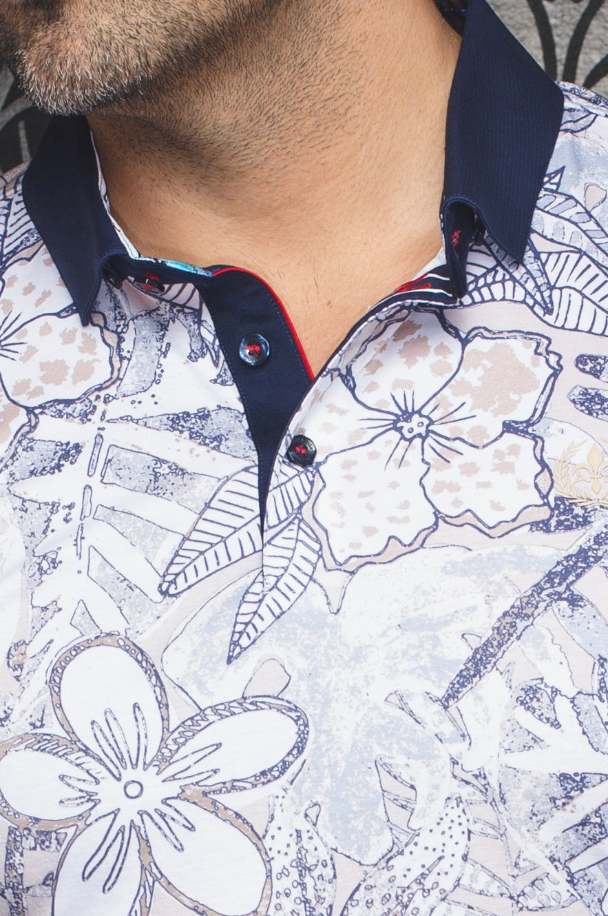 Polo Au Noir is a comfy men's polo shirt from Canada. It features a contrast collar, Au Noir embroidery, and 100% mercerized cotton for breathability and stretch. Wash cold; hang dry.