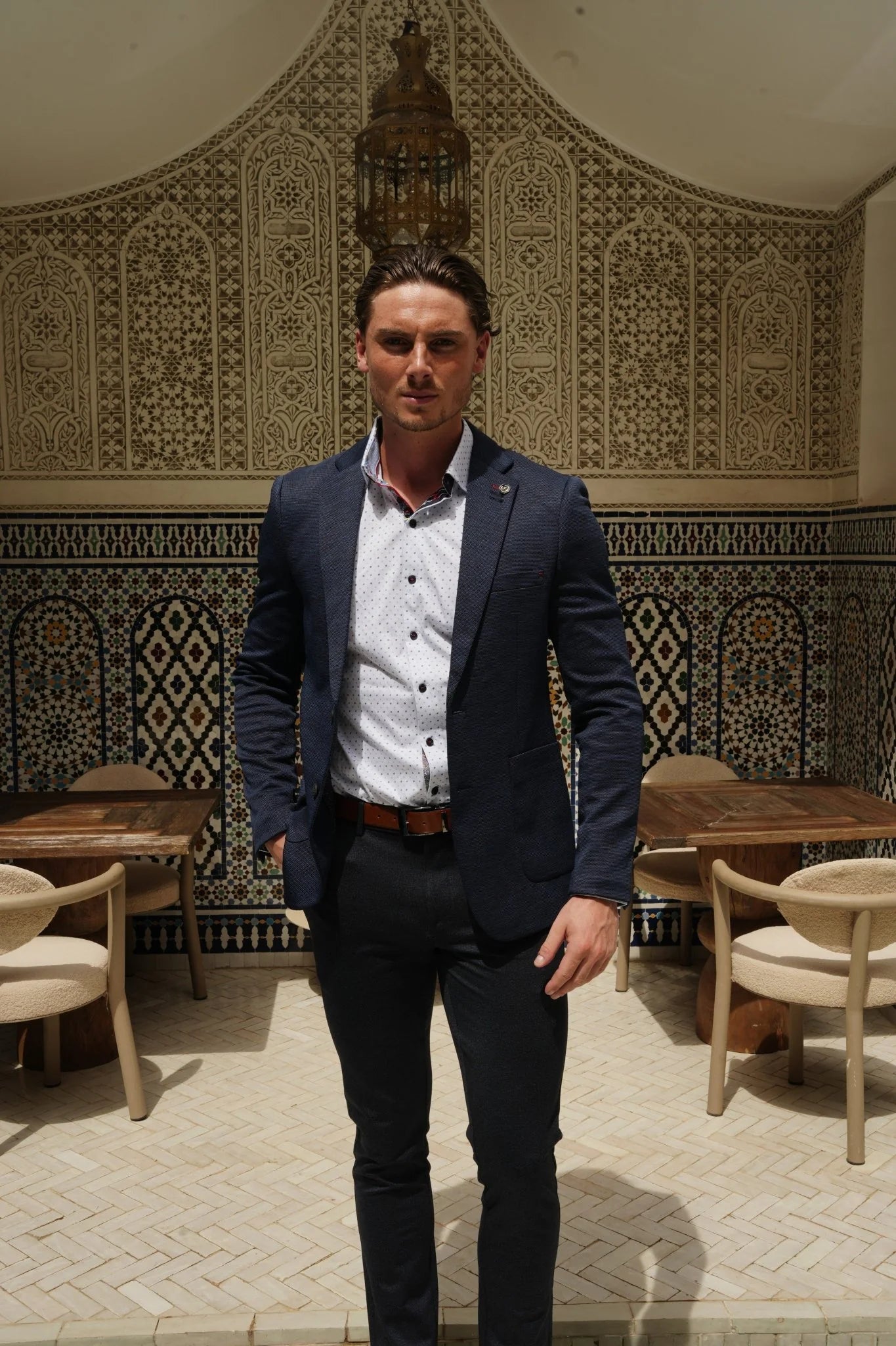 Au Noir's 360° Stretch Shirt uses innovative stretch cotton for cool comfort and full movement. Features signature details like angled buttonholes and embroidery. Canadian brand; machine wash cold. Modern fit for casual or dressy looks.
