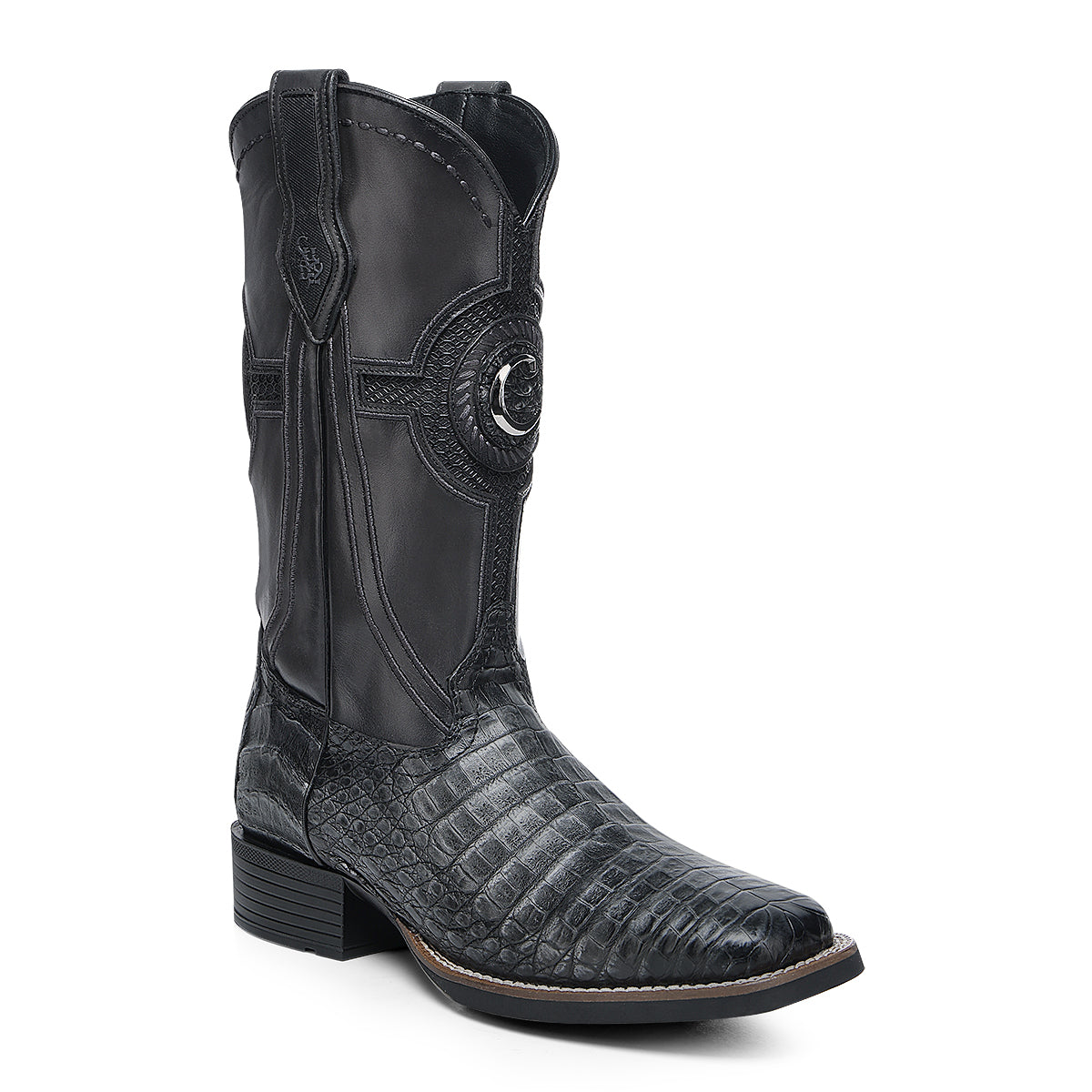 Cuadra Caiman Leather Studs & Embroidery & Woven Square Toe Boots