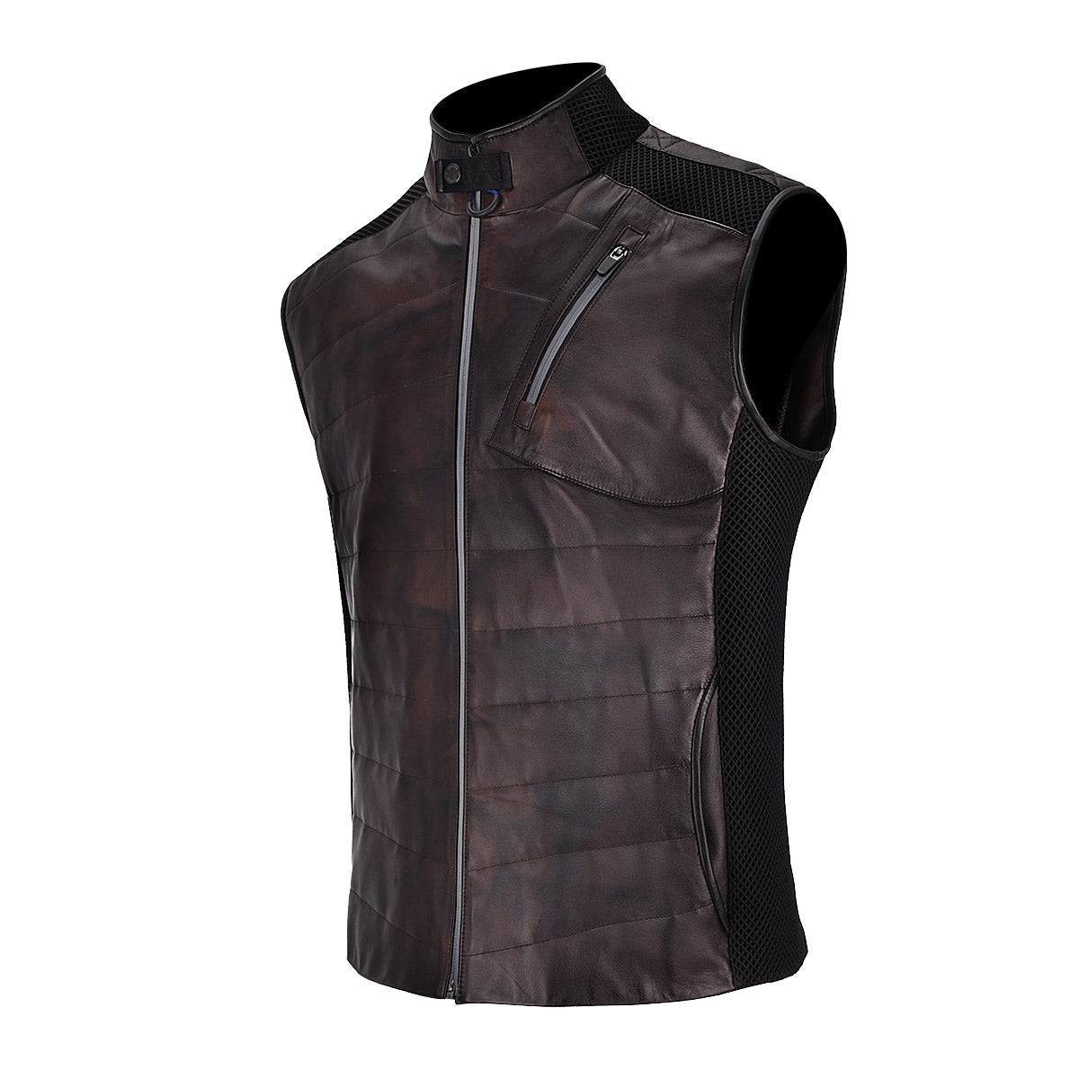 Cuadra Chocolate Color Lamb Leather Zipper Vest for Men