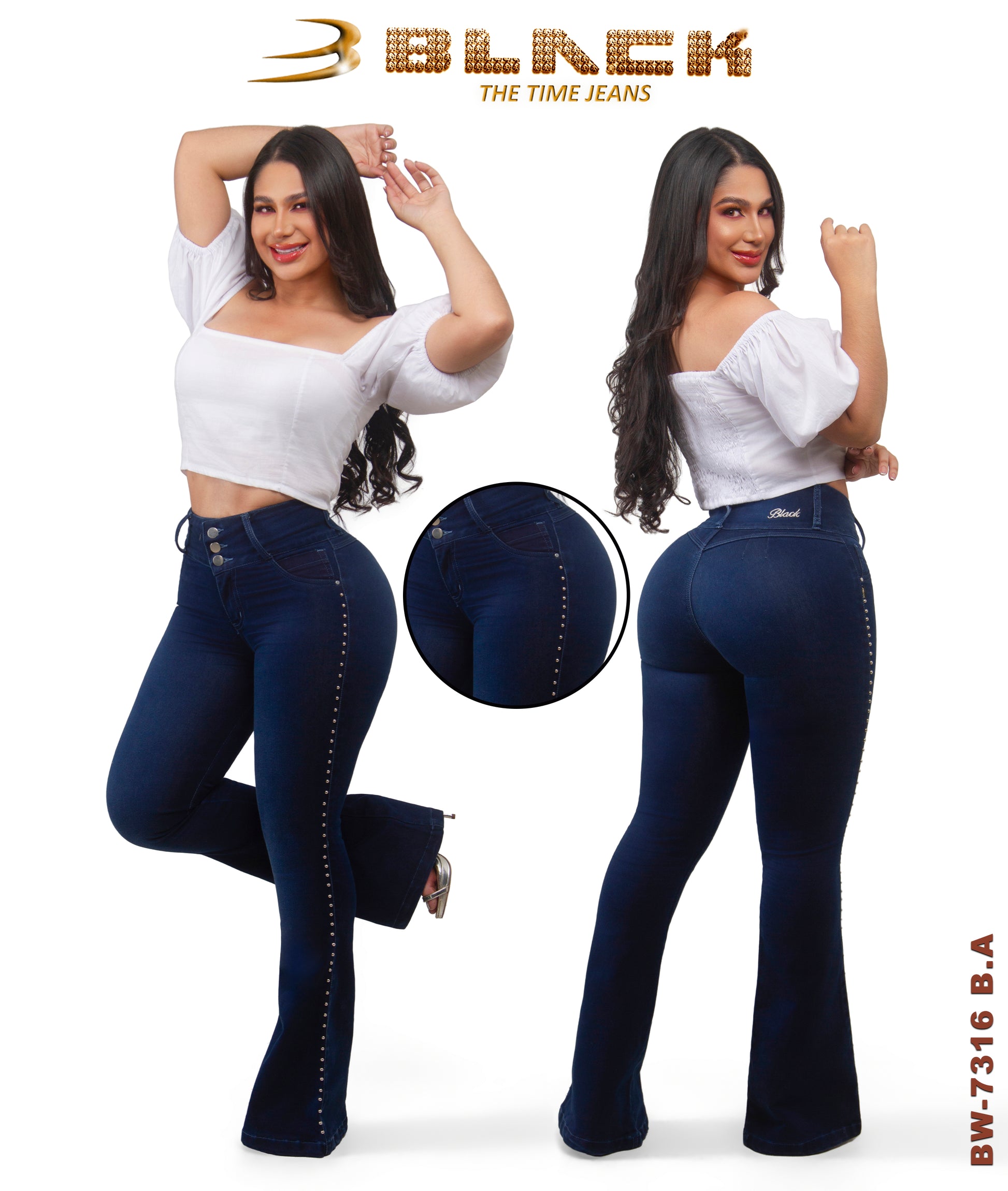 Colombian Black The Time Jean in a blue tone hugs your curves all day. Flex-stretch comfort moves with you, and the butt-lift fit shapes from every angle. Smooth look, easy move. Zip, go. Love!!