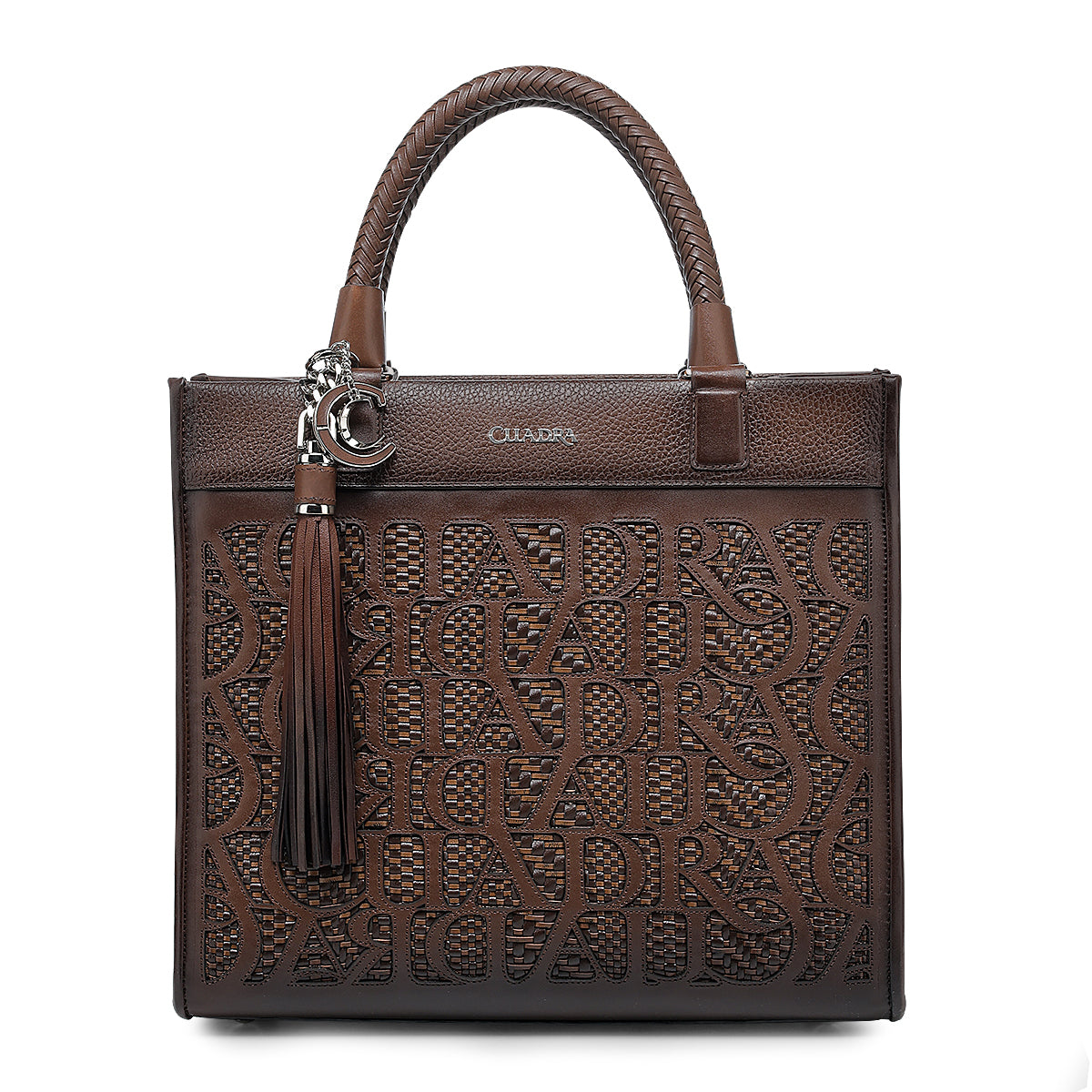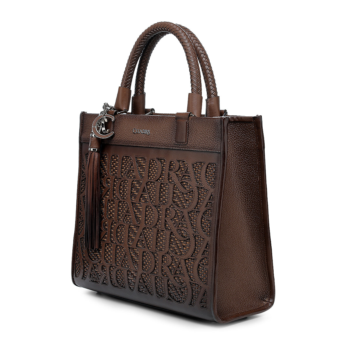 Cuadra Brown Premium Cowhide Leather with Laser Monogram Handbag for Women.